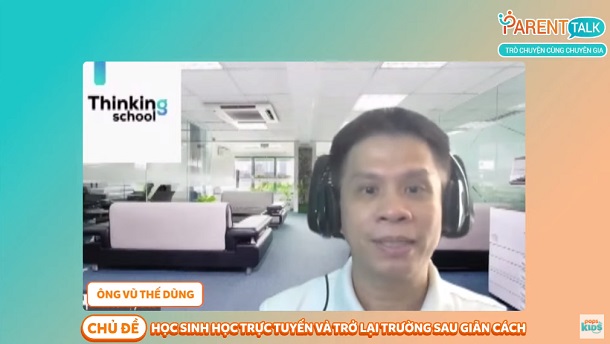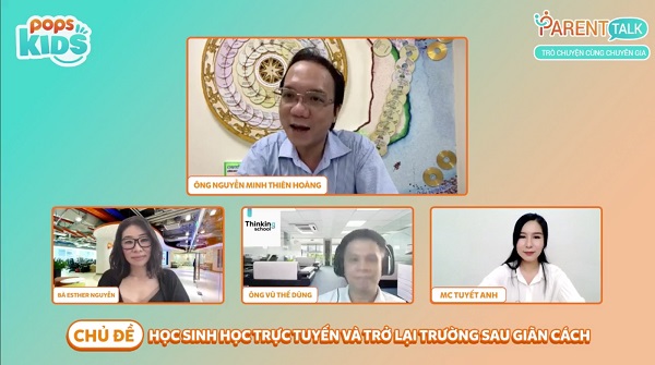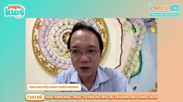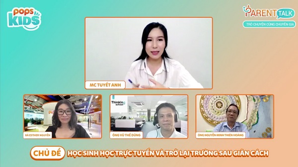 Tintuc - Tối qua (25/10), số đầu tiên của series Talkshow POPS KIDS PARENT TALK – TRÒ CHUYỆN CÙNG CHUYÊN GIA với chủ đề “Học sinh học trực tuyến và trở lại trường sau giãn cách” đã được phát sóng trên các nền tảng POPS Kids, chương trình do POPS phối hợp cùng các cơ quan, đơn vị hàng đầu về giáo dục tổ chức.