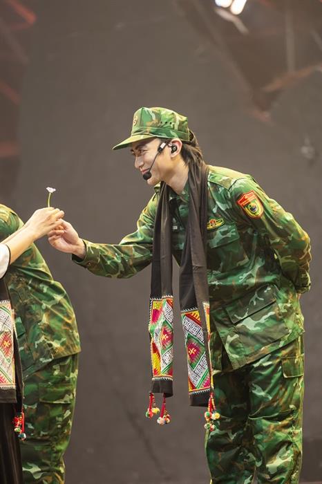 NSND Tự Long và đồng nghiệp nhắc giới trẻ nhớ ơn chiến sĩ đã hy sinh vì được sống trong thời bình / Tri ân bộ đội Biên phòng Việt Nam, ngợi ca tình quân dân ở tiết mục “Chiếc khăn piêu”