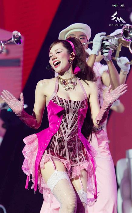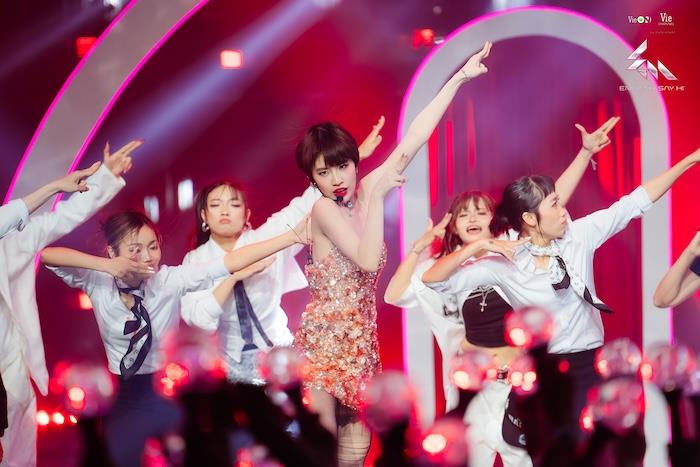 Nữ idol được các Em Xinh cổ vũ nhiệt tình, gọi bằng “mẹ” qua sự trưởng thành và cá tính âm nhạc độc đáo. Em Xinh Phương Mỹ Chi hài hước nói “con lạy mẹ” vì ấn tượng với màn trình diễn.