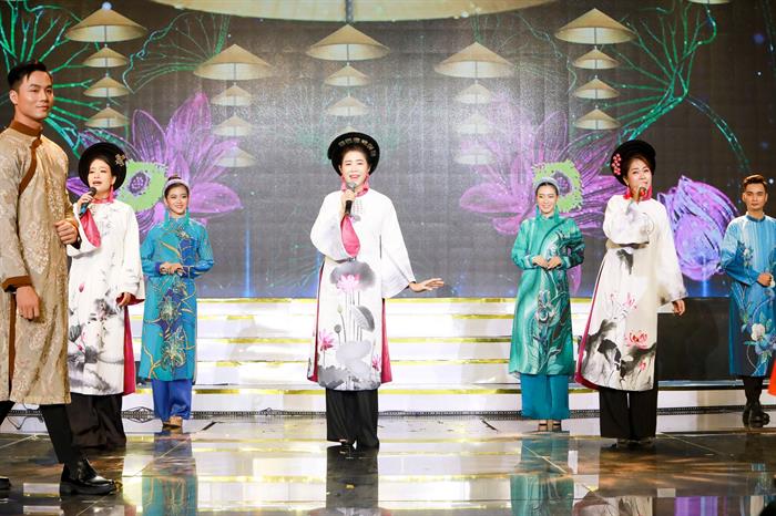 Tiết mục múa “Huyền Ảo trên Tháp” với tài năng của Quán quân nét đẹp Đội viên Đỗ Hoàng Thiên Nga được dàn dựng vô cùng công phu, lộng lẫy cùng 20 Diễn viên Nhà hát Ca múa nhạc dân tộc Bông Sen làm say lòng khán giả… Đặc biệt Nhà thiết kế Nguyễn Việt Hùng- Một người luôn đồng hành cùng các hoạt động nghệ thuật của đội Tình nguyện viên Nghệ sỹ đã ngày đêm gấp rút may gần 400 bộ áo dài mới để gần 150 người mẫu cùng các ca sỹ tỏa sáng trên sàn diễn, góp phần nâng cao giá trị nghệ thuật và sự thành công của chương trình
