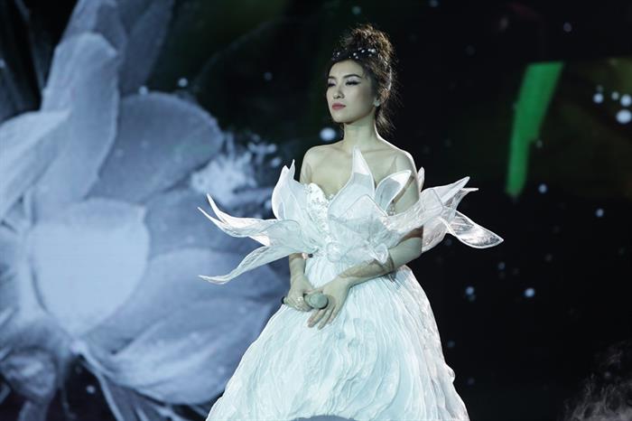 Tiêu Châu Như Quỳnh kết màn với bộ đôi ca khúc "|Thu sầu - Giọt lệ sầu" của nhạc sĩ Lam Phương. Cô nàng đặc biệt thu hút khi mang đến bộ trang phục vô cùng bắt mắt với hình ảnh hoa quỳnh.