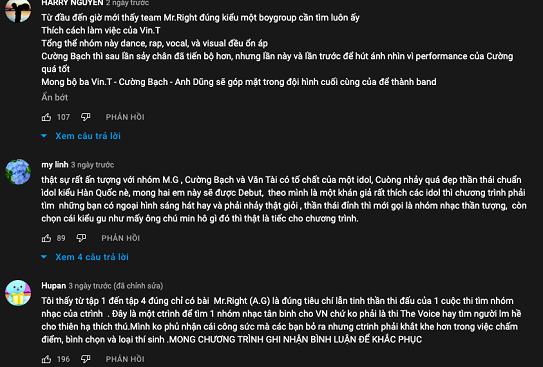 Theo bình luận của khán giả, nhóm R.G đã có phần thể hiện ca khúc Mr. Right của Isaac đúng chuẩn concept Gentleman mà ban tổ chức Vote For Five đưa ra. Nhóm R.G cũng tự biên đạo phần vũ đạo “xịn sò” không thua kém một boygroup Kpop, các thành viên khá đồng đều về visual và vocal.