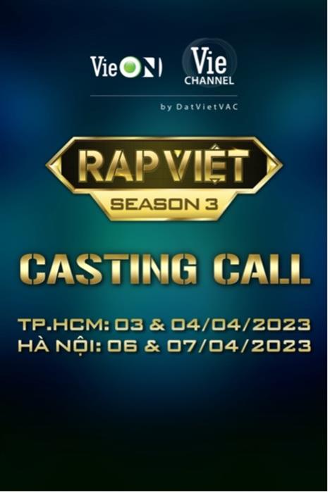 Tintuc - Casting Rap Việt – Mùa 3 do công ty Vie Channel - thành viên của DatVietVAC Group Holdings tổ chức sẽ chính thức diễn ra tại Tp.HCM và Hà Nội vào đầu tháng 4/2023, hứa hẹn sẽ quy tụ nhiều gương mặt rapper trẻ tài năng cùng sự quan tâm cực lớn của hàng triệu khán giả.
