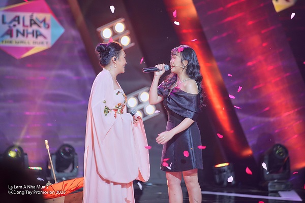 Với giọng ca nội lực, Phương Thanh là một trong những nữ ca sĩ đời đầu vô cùng nổi tiếng với nhiều bản hit đình đám, có sự nghiệp thành công. Nữ ca sĩ đã có phần song ca ấn tượng cùng Diệu Kiên với ca khúc Thuyền Quyên. Chất giọng trầm khàn đặc biệt của Phương Thanh hòa cùng giọng ca bay bổng của Diệu Kiên đem đến cho Thuyền Quyên một sức hút khác, vừa lạ lại vừa quen khiến khán giả không khỏi xuýt xoa. Sau màn “trốn tìm”, Phương Thanh đã có một chia sẻ vô cùng cảm xúc: “Các bạn nhỏ bây giờ quá là có tài. Cô Phương Thanh rất hãnh diện, tự hào khi có một thế hệ tiếp theo giữ được hai chữ “nghệ thuật” rất tuyệt vời!”. Nghe đến đây, Diệu Kiên không khỏi xúc động ôm chầm lấy Phương Thanh cảm ơn rối rít.