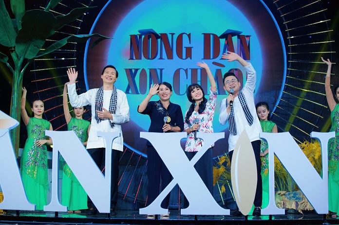 Tại sân khấu của Nông Dân Xin Chào, chị Lê Thị Sáu cùng ca sĩ Diệu Hiền gửi tặng khán giả ca khúc Tình Cây Và Đất.