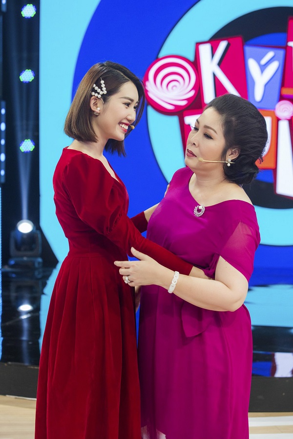 Nữ diễn viên diện váy nhung đỏ cổ điển, vui vẻ gặp gỡ dàn nghệ sĩ kỳ cựu như Nhà giáo ưu tú Mạnh Dung, MC Lại Văn Sâm, Thanh Bạch, Việt Trinh, Long Nhật,… Đặc biệt, đây là lần đầu tiên nàng ‘Hân hoa hậu’ hội ngộ với NSND Hồng Vân – người đảm nhận vai mẹ Mai kể từ lúc bộ phim “Gạo nếp gạo tẻ” kết thúc.