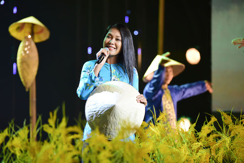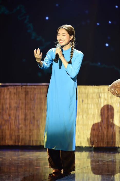 Vén màn cho phần biểu diễn tiếp theo là Đinh Y Nhung với bản nhạc thân quen – Chiếc Áo Bà Ba. Giữa bối cảnh đồng lúa, nữ diễn viên xuất hiện dịu dàng trong tà áo bà ba, cùng mái tóc đen tuyền – hình ảnh vốn đã in sâu trong tiềm thức mỗi người khi nhắc đến người con gái nông thôn. Giọng hát mộc mạc, chân thành, mượt mà như dòng suối cùng nét diễn chân thật của cô nàng đã vẽ nên bức tranh mang phong vị miền quê thân thuộc, gợi lại miền ký ức được chôn sâu của mỗi người.