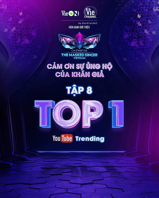 Tintuc - The Masked Singer Vietnam – Ca Sĩ Mặt Nạ Mùa 2 để lại ấn tượng với những tiết mục đẳng cấp, cùng lượt view ấn tượng trên đa nền tảng. Mới đây, chương trình còn xuất sắc ghi dấu với màn “triple kill” Top Trending YouTube.