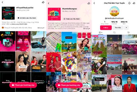 Nối dài #ThanhThoiLuotTet, TikTok cũng khởi xướng thêm hoạt động #SamTetBungSac nhằm mang đến những giây phút mua sắm kết hợp giải trí liền mạch và tiện dụng cho người dùng. Chỉ trong thời gian ngắn, #SamTetBungSac tung nhiều voucher từ ưu đãi giảm 30% đến miễn phí ship cho đơn 0 đồng, hàng loạt phiên LIVE được tổ chức với sự tham gia của hơn hàng trăm nhà bán hàng, doanh nghiệp và thương hiệu uy tín và đa dạng mặt hàng từ thực phẩm, đặc sản địa phương đến làm đẹp, điện tử gia dụng,...