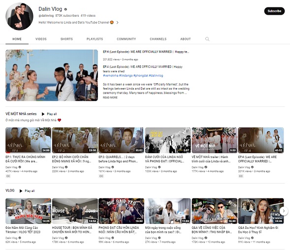 Dalin Vlog: cặp đôi Linda Ngô và Phong Đạt thường xuyên cập nhật những khoảnh khắc hay tình huống về tình yêu hôn nhân, tăng 48.650 subscribe