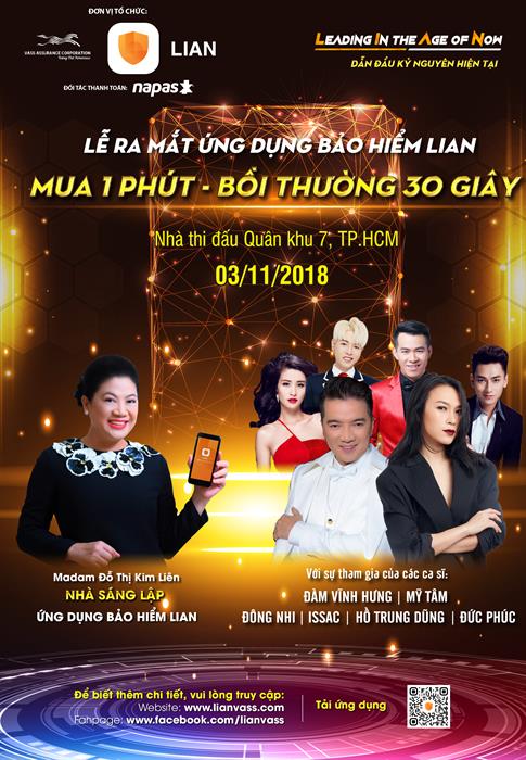 Tintuc - Ngày 3/11 ứng dụng bảo hiểm công nghệ LIAN sẽ chính thức được ra mắt tại sân vận động Quân khu 7 (Q. Phú Nhuận, TPHCM). Người tham dự được hoàn toàn miễn phí: xem đại nhạc hội với các ca sĩ nổi tiếng, trải nghiệm bảo hiểm công nghệ, có cơ hội kiếm tiền…