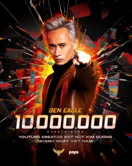 Tintuc - Ngày 28.11.2023, sau hơn hai năm hoạt động, Kênh YouTube Ben Eagle của đạo diễn võ thuật Ben Eagle đã cán mốc 10 triệu lượt theo dõi và trở thành kênh YouTube thứ 11 tại Việt Nam đạt được Nút Kim Cương.