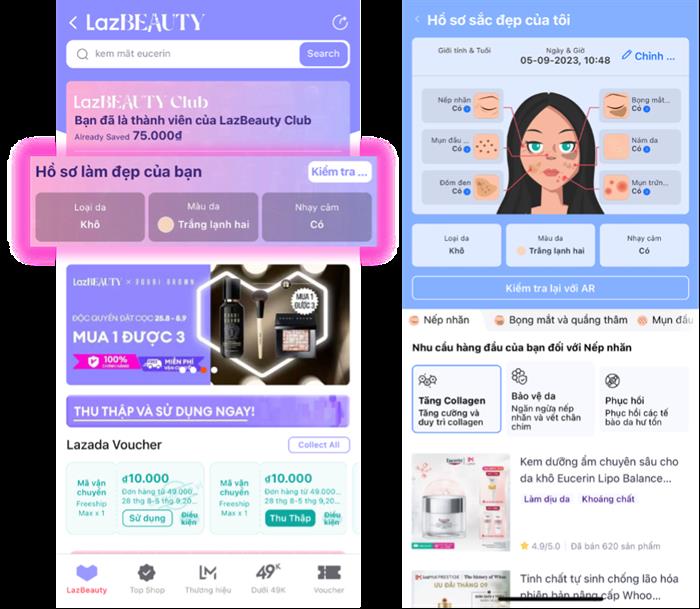 Người dùng có thể trải nghiệm tính năng này trên LazBeauty trên ứng dụng Lazada bằng cách scan gương mặt trực tiếp, sau đó thuật toán AI sẽ chẩn đoán và phân tích giúp người dùng hiểu rõ hơn về tình trạng da của mình như loại da, màu da, độ nhạy cảm, nếp nhăn, vết thâm, mụn và các vấn đề khác... Dựa trên kết quả này, Lazada sẽ đưa ra những sản phẩm gợi ý đáp ứng nhu cầu thực tế của từng khách hàng. Sau đó, họ có thể tìm những sản phẩm gợi ý này trên “Try and Buy” với mức giá cực “hời”, chỉ từ 9.000 đồng và 99.000 đồng, cũng như nhận thêm voucher giảm giá 12% cho đơn hàng tiếp theo khi mua sản phẩm full-size.