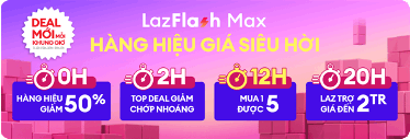 - LazFlash Max đặc biệt hấp dẫn với ưu đãi lên đến 50% trong khung giờ 0H – 2H; 2H – 12H; 12H – 14H; 20H – 24H hằng ngày.