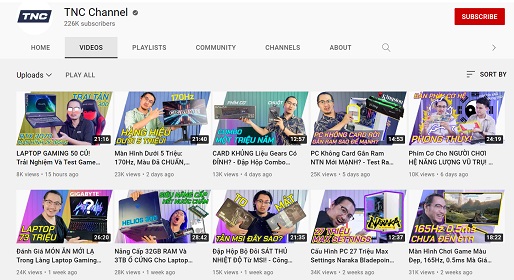 Nổi trội hơn hết chính là TNC channel với 27 video trong tháng ghi nhận 128% tăng trưởng. TNC Channel được thành lập với mục đích mang tới cộng động những video review, bản tin tức công nghệ mới nhất và chi tiết nhất. Bên cạnh đó, TNC Channel luôn cố gắng đầu tư để có thể mang đến các bạn những video chất lượng với nội dung ý tưởng hoàn toàn mới, trẻ trung. TNC Channel tập trung chủ yếu vào mảng Hi-Tech, Gaming PC, Gaming Laptop, Gaming Gear. Việc duy trì lịch ra video đều đặn hoặc đầu tư hẳn một series có số tập rõ ràng đã giúp người xem dễ theo dõi.