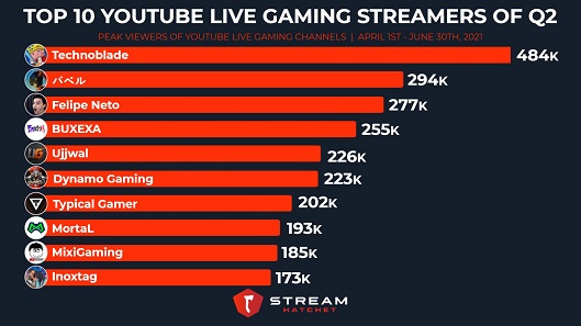Mới đây, Twitter của Stream Hatchet đã chính thức công bố danh sách top 10 các Gaming Streamer hàng đầu trên YouTube trong quý 2 năm 2021. Đặc biệt là có sự xuất hiện đại diện duy nhất của Việt Nam là Độ Mixi với kênh YouTube MixiGaming. Cụ thể, với lượt xem stream đạt đỉnh là hơn 185.000, MixiGaming đã cán đích ở vị trí thứ 9 trong danh sách. Stream Hatchet cung cấp dữ liệu và thông tin chi tiết để hướng dẫn bạn đưa ra các quyết định trong ngành Esports và Game Streaming.