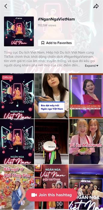 Sau hơn nửa tháng triển khai, #NganNgaVietNam đã có những điểm nhấn đáng kể trên hành trình quảng bá du lịch và văn hoá Việt Nam trên nền tảng TikTok. Cụ thể, hashtag #NganNgaVietNam có tổng cộng hơn 110 triệu lượt xem.