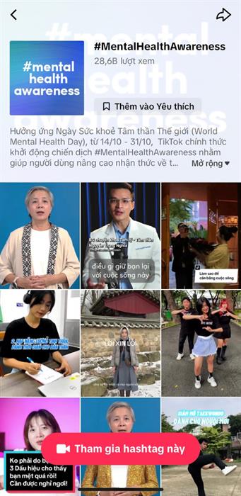 Sức khỏe tinh thần luôn là một trong những phương diện quan trọng được TikTok đề cao xuyên suốt hành trình xây dựng và phát triển nền tảng. Do đó, TikTok đã tăng cường nhận thức về sức khỏe tinh thần với chiến dịch #MentalHealthAwareness tại Việt Nam với sự đầu tư vào 02 khía cạnh chính: Cộng đồng tích cực và Trải nghiệm an toàn. Xuyên suốt chiến dịch, TikTok đã liên tục cập nhật thông tin bao gồm tài nguyên giáo dục, buổi phát sóng trực tiếp cùng với các chuyên gia trong lĩnh vực nhằm nâng cao nhận thức cộng, đồng tạo cơ hội cho cộng đồng chia sẻ và vượt qua những vấn đề về sức khỏe tinh thần như Cách giúp chữa lành bản thân, Thử thách rèn luyện thói quen tích cực,.v.v. Tính đến thời điểm hiện tại, #MentalHealthAwareness đã nhận được sự quan tâm lớn từ cộng đồng nhà sáng tạo và người dùng với hơn 28 tỷ lượt xem, qua đó tiếp thêm động lực cho những nỗ lực không ngừng của TikTok để thúc đẩy trải nghiệm người dùng an toàn.
