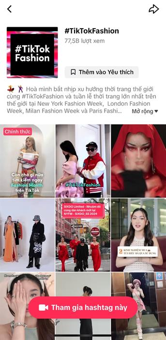 TikTok đã chứng kiến sự lên ngôi của nhiều xu hướng mới. Bằng việc thể hiện gu thời trang độc đáo thông qua những bộ cánh #OOTD (Outfit Of The Day. Tạm dịch: Trang phục trong ngày) hay diện mạo #GRWM (Get Ready With Me. Tạm dịch: Sẵn sàng cùng tôi), cập nhật xu hướng thịnh hành hay lan tỏa thông điệp về thời trang bền vững, cộng đồng nhà sáng tạo thời trang và làm đẹp khắp thế giới đã cùng nhau hội ngộ tại TikTok để thỏa sức sáng tạo, chia sẻ và truyền cảm hứng về thời trang tại #TikTokFashion. Đến nay, #TikTokFashion đã cán mốc 77,5 tỷ lượt xem, qua đó mở ra cơ hội để người dùng đã được hòa vào làn sóng thời trang và làm đẹp khắp toàn cầu, tận hưởng những khoảnh khắc đặc biệt trên sàn diễn lẫn phía sau hậu trường với sự đồng hành của các nhà sáng tạo và thương hiệu thời trang nổi bật.