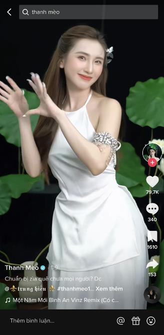Kể từ khi thu hút sự chú ý từ cộng đồng qua những video tình huống hài hước cùng anh bạn Diễn Dler, Thanh Mèo dần trở thành gương mặt nhận được lượt yêu thích khủng trên TikTok. Tại kênh cá nhân, nhờ tận dụng ưu thế về ngoại hình và sự chỉn chu trong sản xuất nội dung, những video do người đẹp đăng tải nhận được rất nhiều phản ứng tích cực từ cộng đồng. Đến nay, tài khoản của cô nàng đã cán mốc 55 triệu lượt thích và gần 3 triệu lượt theo dõi.