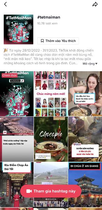 Giây phút gắn kết đầy quý giá ngày Tết cũng là lúc ta nhận ra những khoảnh khắc lạc nhịp tạo nên khoảng cách vô hình giữa các thành viên trong gia đình. Chào đón năm 2023 "mãi mận mãi keo", TikTok đã khởi động chiến dịch #TetMaiMan để cùng tìm lại những giai điệu giúp gắn kết tình thân và tận hưởng trọn vẹn khoảnh khắc sum vầy. Trong 01 tháng ra mắt, người dùng có thể cảm nhận không khí ngày hội rộn ràng trên TikTok với những video giao thoa giữa Tết hiện đại và Tết cổ truyền, gợi ý xúng xính lên đồ hoặc cách biến tấu các món "tuy lạ mà quen". Với sự tham gia của Nghệ sĩ nhân dân Bạch Tuyết, diễn viên Cao Minh Đạt, Uyển Ân và các nhà sáng tạo nội dung khác, chiến dịch đã tạo nên một khởi đầu đầy tích cực trong năm với hơn 10 tỷ lượt xem và hơn 2,2 triệu video đăng tải.