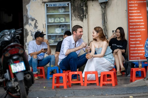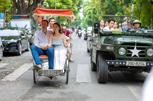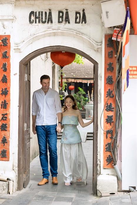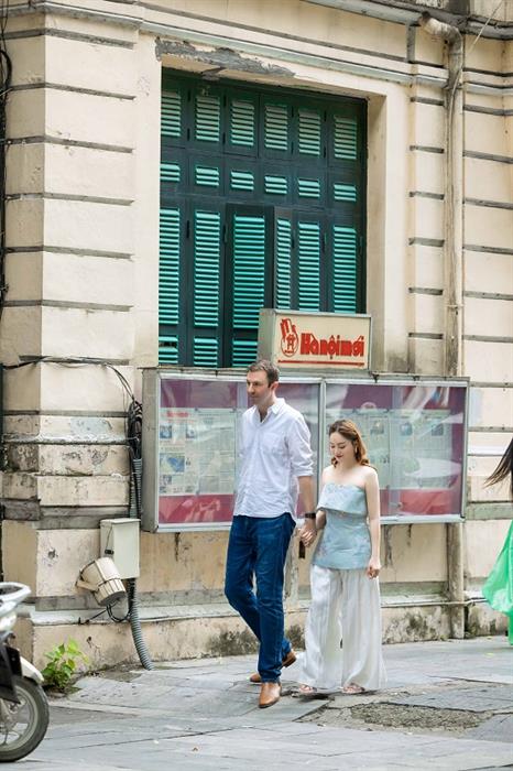 Bộ ảnh được chụp tại thủ đô này đã ghi lại những khoảnh khắc giản đơn, mộc mạc nhất của hai người trên đường phố Hà Nội, từ những con người, cảnh vật cho đến những món ăn đều để lại ấn tượng sâu sắc trong lòng Lan Phương và chồng.