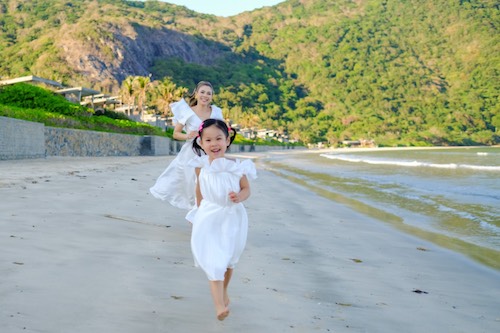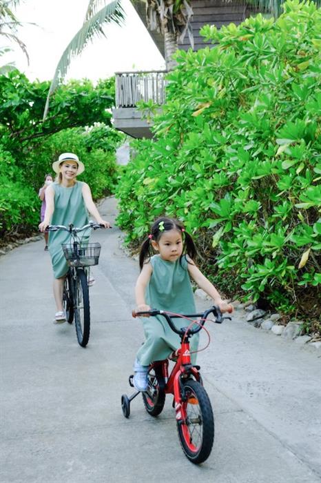 Thanh Thảo cùng chồng rất thích biển nên thường chọn những resort sát bãi biển để con gái có thể khám phá thiên nhiên, chơi đùa với sóng biển, hoạt động thể thao như bơi lội, đạp xe. Công chúa nhỏ Talia gần 4 tuổi nhưng rất có năng khiếu về hoạt động thể chất, lanh lẹ và hiếu động.
