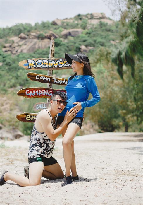 Tuy đang mang bầu nhưng có lẽ chính Hoàng Bách còn phải “phát hoảng” khi thấy bà xã hoàn toàn khỏe mạnh và đủ sức tham gia mọi hoạt động trong chuyến du lịch như lặn ngắm san hô, câu cá hay bắt nhum. Thậm chí, Hoàng Bách còn “lặn” thua cả bà xã. “Cũng tội nghiệp chồng mình, lo canh con còn lo canh thêm vợ vì theo mọi người, mình là bà bầu quậy nhất, chịu chơi mà họ từng gặp. Nhưng với Thảo, chuyện này cũng bình thường vì mình là cô gái miền Tây sông nước, cứ thấy nước là thích. Mẹ Thảo kể, hồi có bầu Thảo, mẹ còn phải ngụp lặn dưới nước lũ đến tháng thứ 8 để cắt lúa nên mấy chuyện này đối với Thảo là "chuyện quá nhỏ", bà xã Hoàng Bách hài hước.