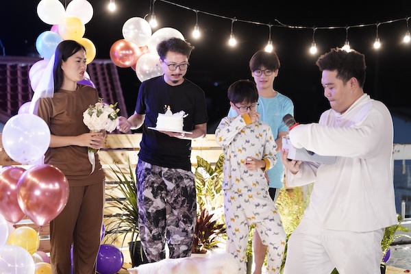 Thế nhưng, bí mật được bật mí khi hai cậu con trai Bánh Mì – Xá Xị mới chính là những người đã lên ý tưởng, cùng hỗ trợ để tạo ra sân khấu kỉ niệm đầy cảm xúc này. Bánh Mì cũng bật mí rằng mình rất thích ăn bánh Cosy, thậm chí “ăn từ sáng đến giờ”. Cậu nhóc nói thêm với ba mẹ: “Những năm trước, tụi con không có cơ hội làm bất ngờ. Nay may mắn và sẵn đang quay chương trình nên tụi con mong muốn làm tặng ba mẹ”.