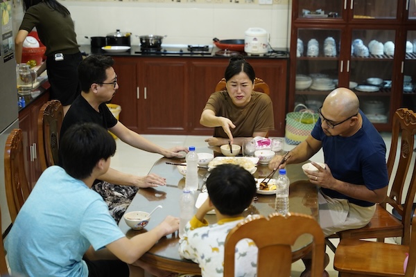 Huỳnh Đông sau đó nỗ lực trong việc thuyết phục Lâm Vỹ Dạ di chuyển khỏi bàn ăn với những động thái hết sức “kỳ lạ”. Sau đó, nữ diễn viên nhận ra có người lạ đã vào nhà, lập tức hiểu được những hành động trước đó của diễn viên Huỳnh Đông và tạo ra “mảng miếng” đầy hài hước khiến những người có mặt không thể nhịn cười.