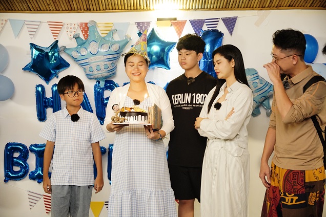 Ngay khi bước vào ngôi nhà tại Tuy Hòa, Lâm Vỹ Dạ không giấu được sự bất ngờ trước những màn trang trí hoành tráng với màu xanh yêu thích của nữ diễn viên. Cùng với đó, lời chúc từ Trương Quỳnh Anh và bé Sushi cũng khiến Lâm Vỹ Dạ đầy cảm xúc. Diễn viên Võ Tấn Phát cũng gửi đến những lời chúc mừng cho người đàn chị. Dù vậy, thứ Lâm Vỹ Dạ tập trung vào chính là lớp make-up “hơi đậm” của người đàn em. Hai vợ chồng Gin Tuấn Kiệt – Puka chúc Lâm Vỹ Dạ lạc quan, yêu đời vì cuộc sống đã quá đủ đầy, viên mãn.
