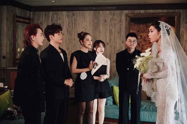 Khi mọi thứ đã sẵn sàng, ekip đã đánh lạc hướng hướng sự chú ý của người thân và bạn bè Minh Tú ở lối vào và Minh Tú bất ngờ bước ra từ sau tấm màn trong chiếc váy cưới trắng tinh khôi, được thiết kế bởi nhà thiết kế nổi tiếng Chung Thanh Phong. Người thân và bạn bè của cô vô cùng ngạc nhiên và thú vị trước sự xuất hiện bất ngờ này. Minh Tú trong bộ váy cưới bỗng hóa dịu dàng và lộng lẫy như một nàng công chúa nhưng cô vẫn không giấu được sự hồi hộp trong ánh mắt vào ngày trọng đại.