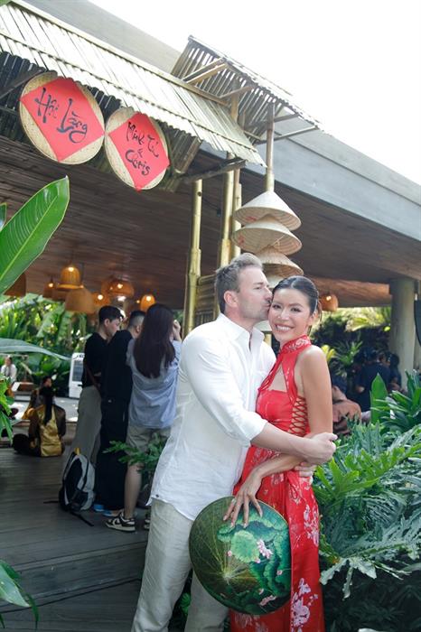 Lễ cưới của vợ chồng Minh tú được tổ chức tại An Lâm Retreats Saigon River và được trang trí tinh tế với hoa và chất liệu mang đậm nét Việt Nam trong không gian mở bên sông. Đông đảo khách mời sống và làm việc ở nước ngoài nên vợ chồng Minh Tú chu đáo thu xếp cả nơi ở để đem đến trải nghiệm thoải mái nhất cho họ. Trước ngày diễn ra lễ cưới, vợ chồng Minh Tú tổ chức một buổi tiệc nhỏ với những hoạt động và ẩm thực mang đậm bản sắc văn hoá Việt Nam. Cô lên ý tưởng trang trí không gian như một hội làng thu nhỏ với nhiều món ăn đặc trưng của Việt Nam và những hoạt động thú vị khiến khách mời vô cùng tò mò và thích thú.